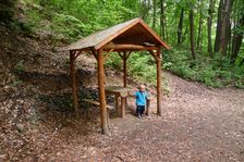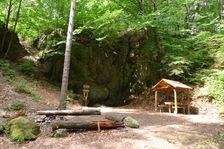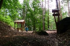ohnisko ¤, prístrešok, altánok ¤, poľovnícky posed ¤