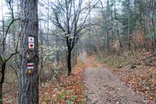 Medzinárodná diaľková turistická trasa E8, Slovensko ¤, Hrad Devín, parkovisko - Horná Poruba, U Brdárov ¤, Cesta hrdinov SNP ¤, Omsenie - Bartosovica ¤